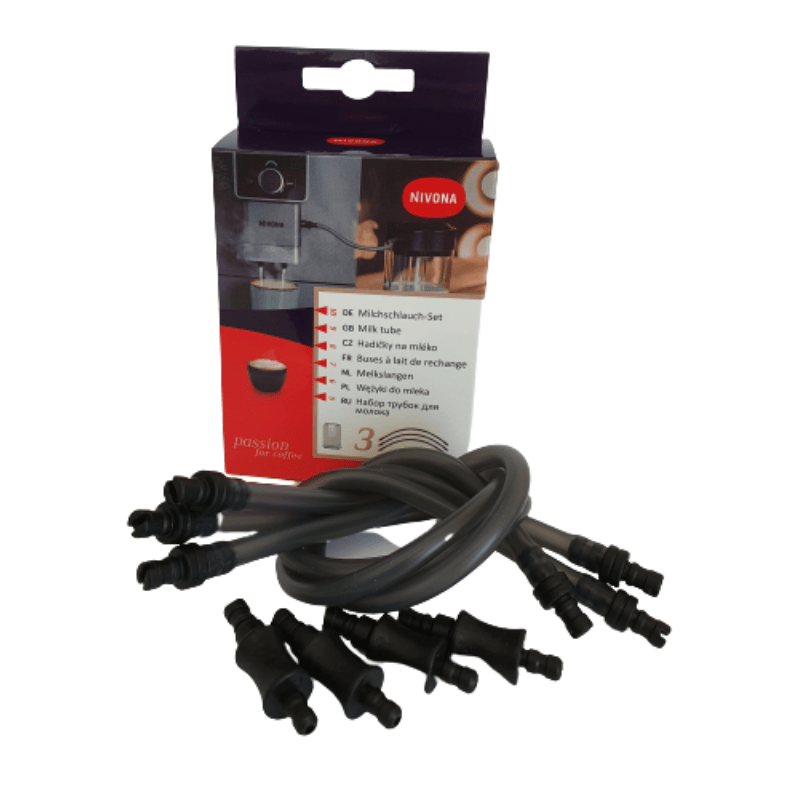 Een set bestaat uit 3 slangetjes, inclusief nippels, zodat u weer een tijdje vooruit kunt. De slangen passen op alle machines en melkbekers van NIVONA. Alle delen zijn vaatwasserbestendig.